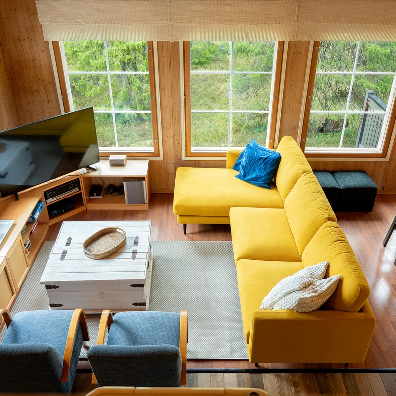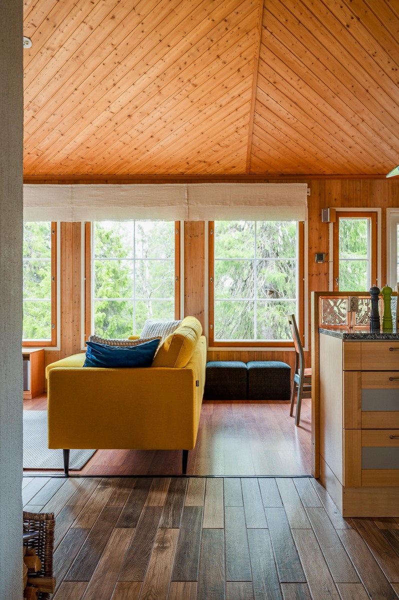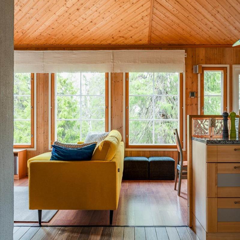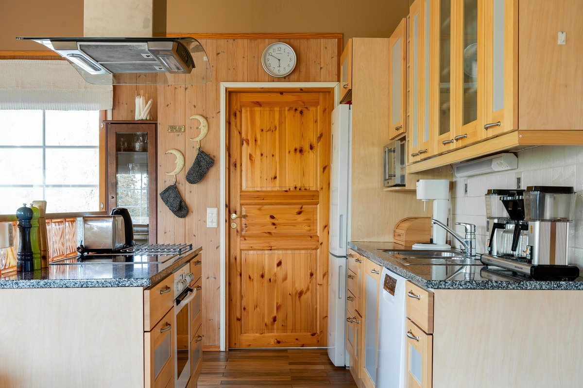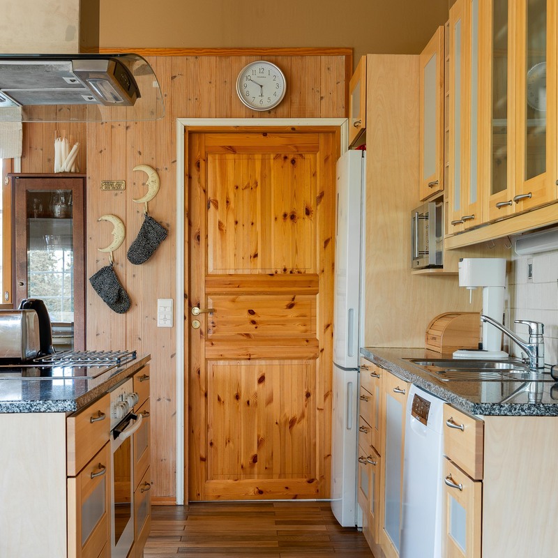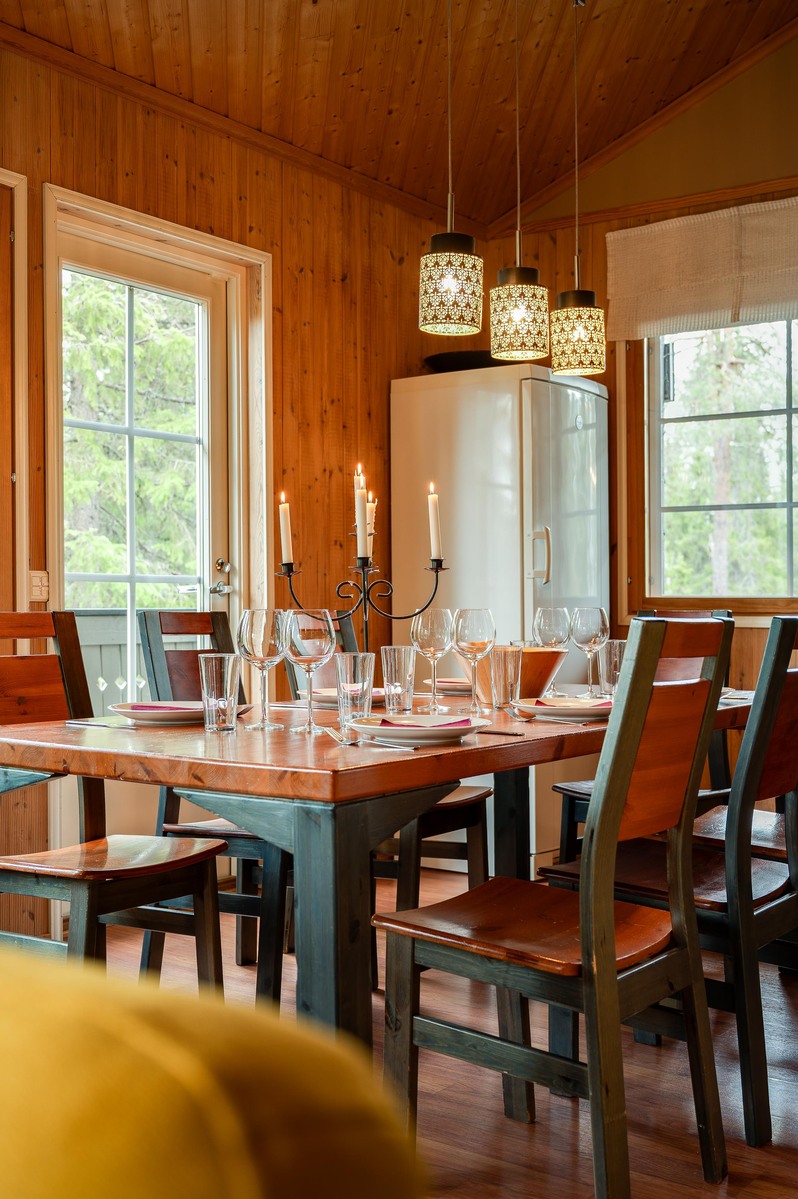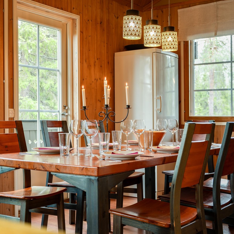 Sijaintinsa puolesta huvila avautuu suurten ikkunoiden kautta upeaan metsän siimekseen, tarjoten rauhaa ja luonnon läheisyyttä ympäri vuoden. Avara oleskelutila, iso ruokapöytä ja takka luovat lämpimän tunnelman, jossa on helppo kokoontua, rentoutua ja nauttia yhdessäolosta.